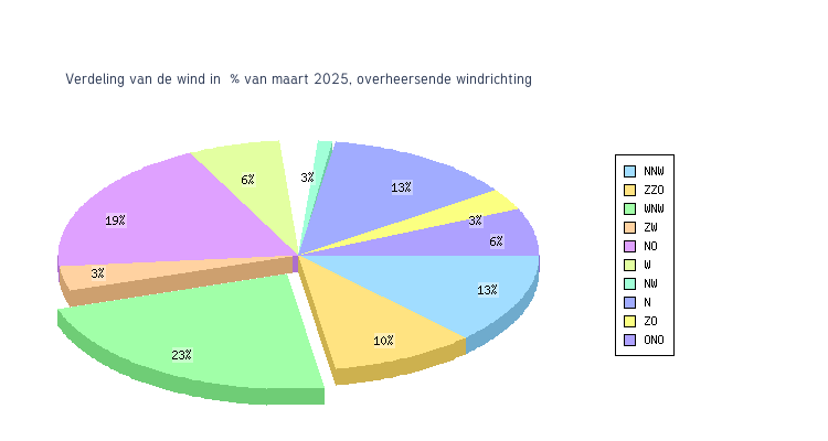 | Totaal | -3.9 °C | 22.3 °C | 6.8 °C | 3.6 km/h (46.7 km/h) | WNW |