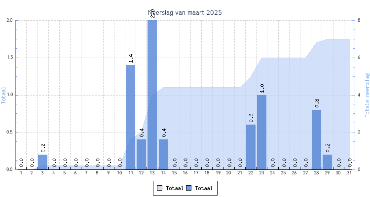 - Hoogste neerslag op een dag : 2.0 mm de 13e